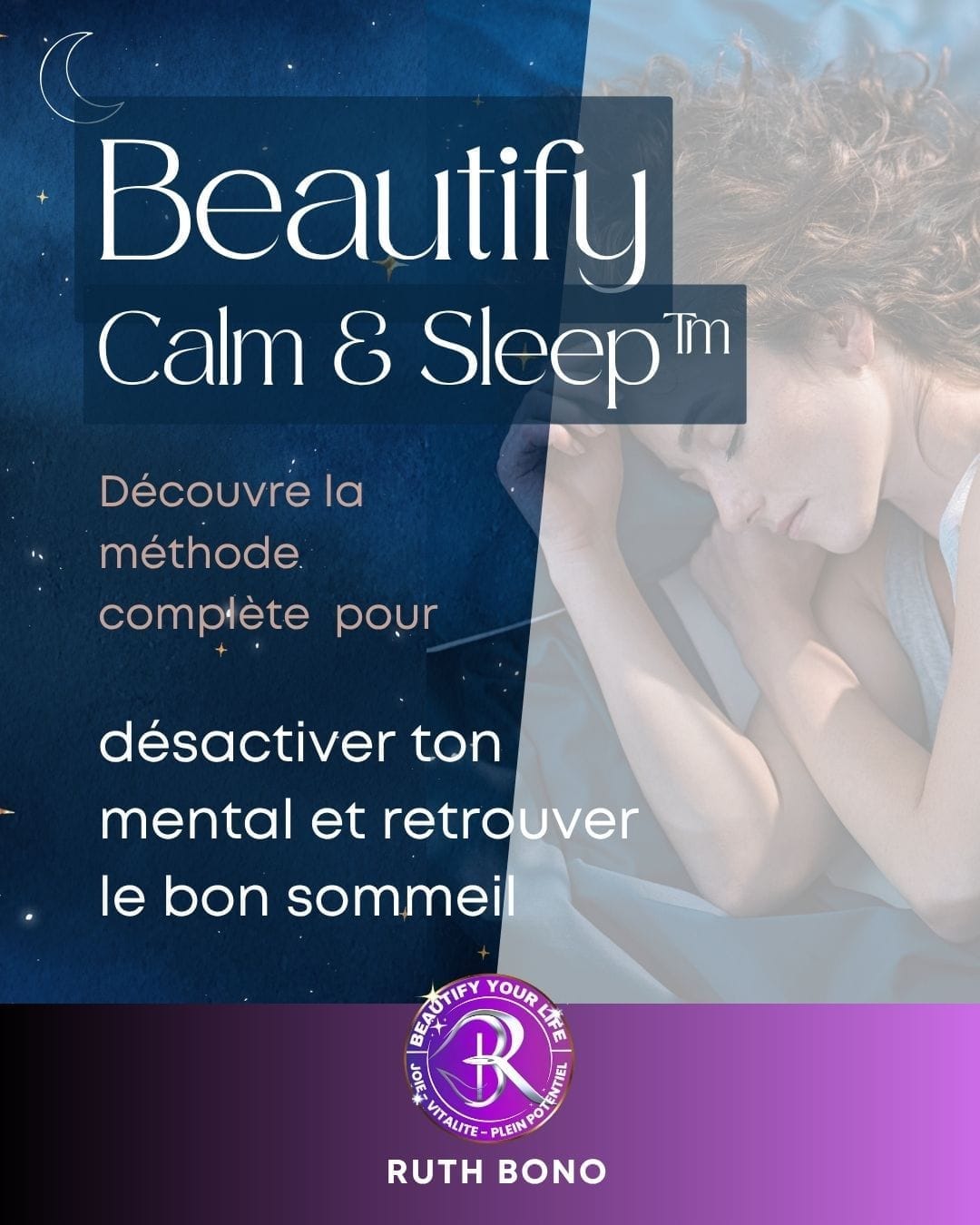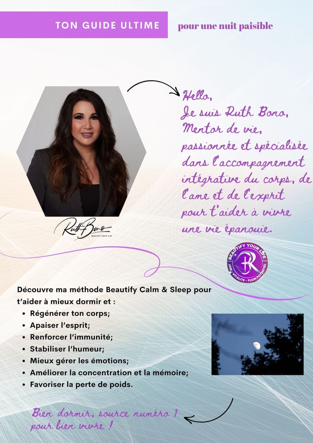 Salut ! Je suis Ruth Bono, Fondatrice de Beautify Your Life™ et créatrice du programme Beautify Calm & Sleep™
